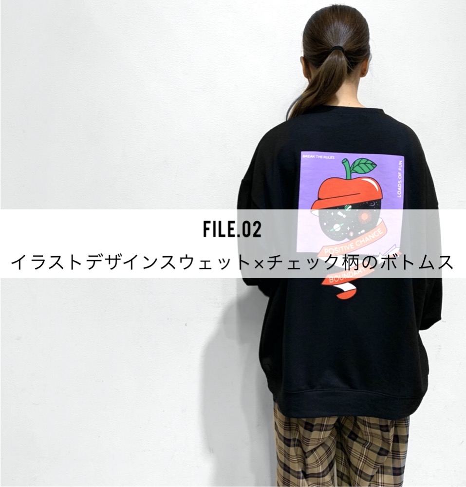 2021.03.23特集FILE.02イラストデザインスウェット×チェック柄のボトムス